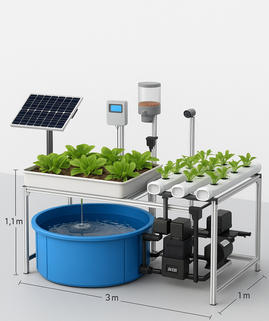 Aquaponics systems use very little water compared to soil farming. Water is continuously recycled, and only small amounts are lost due to evaporation and plant uptake — making it perfect for water-scarce regions in the Middle East and North Africa.